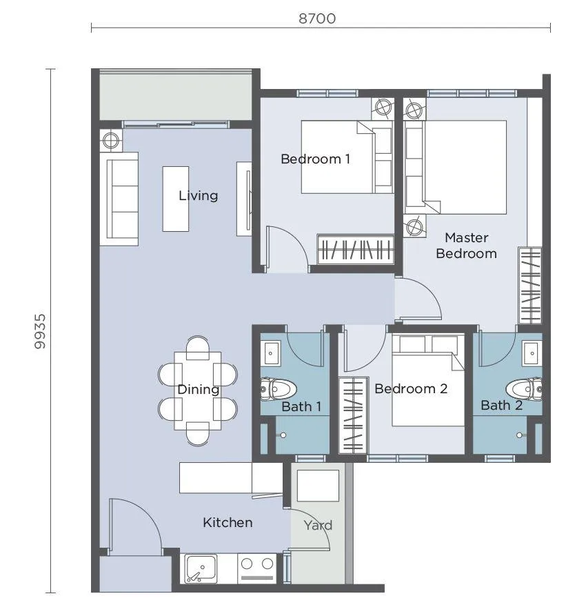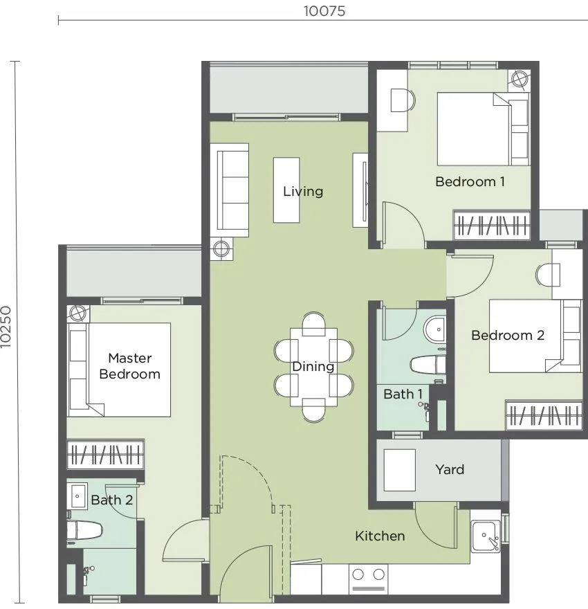 3 Rooms 2 Bathrooms